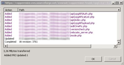This is great for the developer, but what's the benefit for regular users then? To be able to understand this, you'll have to understand how releases work: the dev team decides that it's time to release a new package, so the packager (the dev team member who is in charge of creating the package for end users) will perform a checkout from the SVN repository to make sure that his local files are up to date. Then he creates an archive and uploads that archive to the downloads section of the coppermine webspace, where the end user can get that package. In each of the files inside the package, the revision numbers still show through, but don't have an impact on the release, so you (the end user) don't need to worry about the revision numbers in the first place - after all, you the package you have downloaded has got a version number, that's all you need to know. However, development continues - developers are still fixing bugs in the repository, so the revision count of the files in the svn repository will increase. There won't be a new package release just because just one file in the repository changed - usually, several changes (=fixes) will be rolled into one when a new package is being released. Now, what's the catch? Well, between official package releases, you can still get the most recent files from the svn repository - that's recommended for users who are concerned about security, but as well if you experience an issue with your gallery and read about a fix on the bugs board that a developer has reported to be fixed in the svn. If you want to get the fix, head over to the web SVN, browse it and get the file that contains the fix. Use it as a replacement for the file on your server that was buggy. If you do that, versioncheck will report your file on the server to be newer than expected (because it actually is newer than the file that went into the released package).