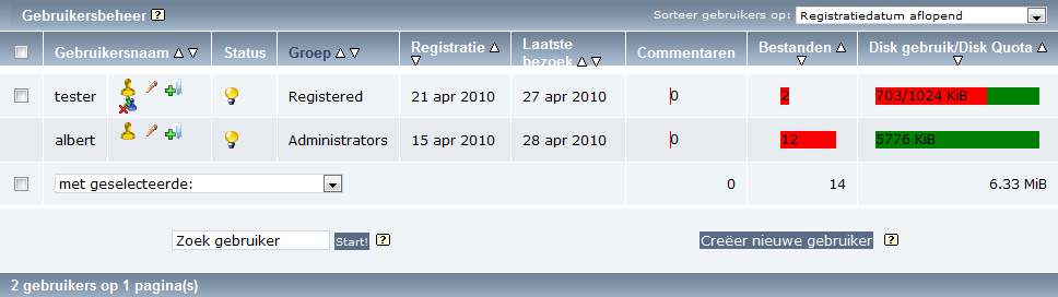 In this documentation, the term "user" is used for visitors of your gallery who have registered an account and have logged in. The term "visitor" is used for all who access your gallery, both registered users as well as unregistered guests. Registration features (if visitors are allowed to register in the first place and how registration will work) can be configured in the corresponding section of the config panel. Coppermine comes with a user management of it's own that allows you to control what group your users are in (group membership controls permissions) unless you disable the built-in user management in favor of bridging Coppermine with another app. If you enable bridging, the bridging application will take over and control your users instead of Coppermine.
