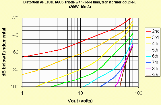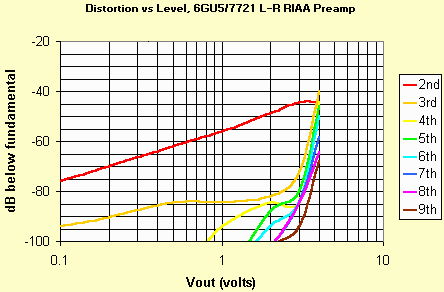But, when the output stage is altered to the triode connected 7721, the overall distortion is really low: