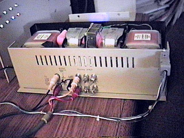 The secondary of the first transformer backward feeds a second toroidal transformer. This provides a raw voltage of approximately (~) 270 volts for the high voltage needed. (Note that the ~270 volts looks like -270 volt in the picture above). A voltage regulator with two independent outputs at about 215 volt DC is then provided. I provided two jacks so that I could use the outputs in multiple places. In the full system, the second output will go to the main system power supply.
