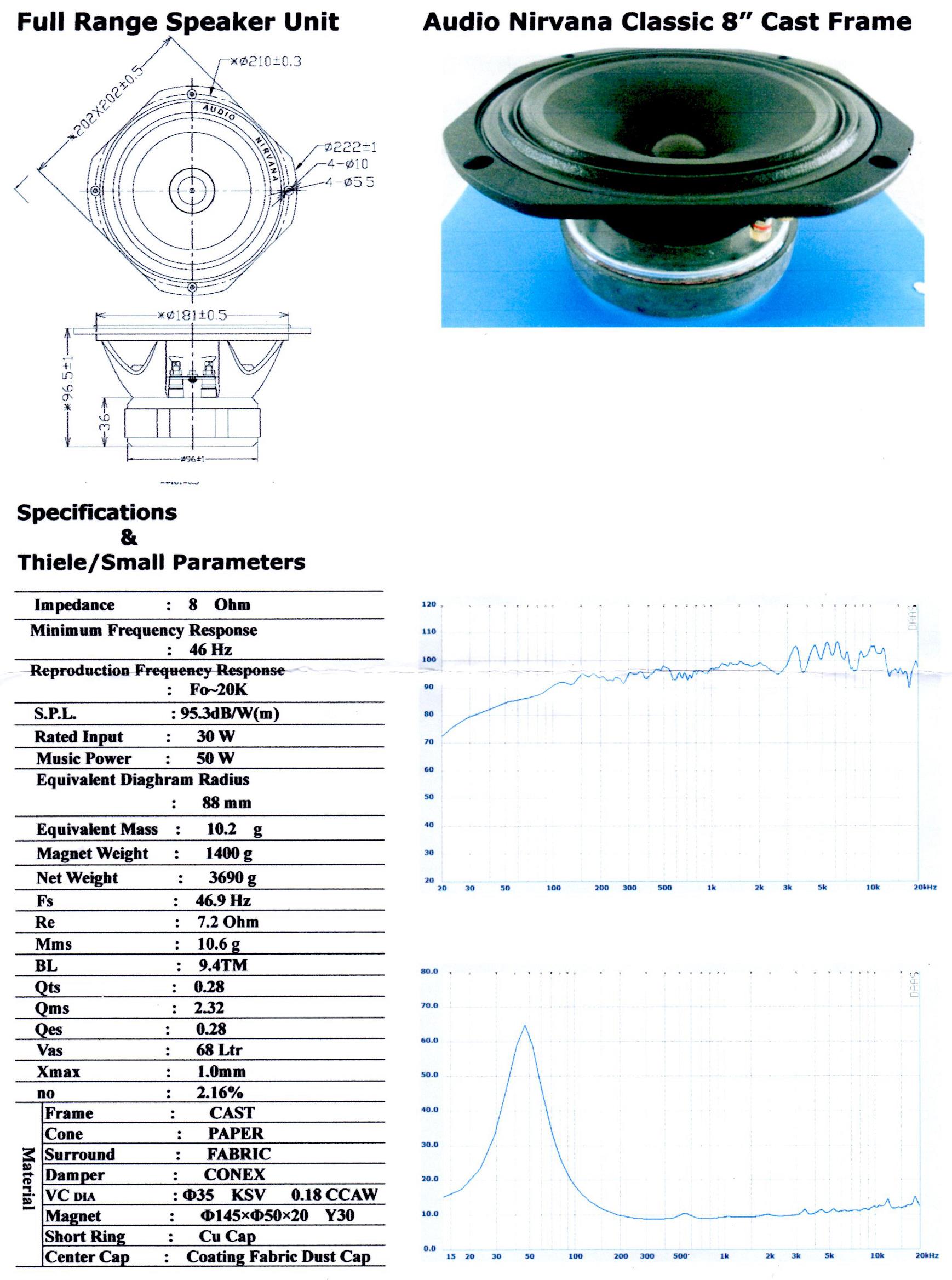 Datasheet - Audio Nirvana Classic 8 Fullrange Speaker Driver